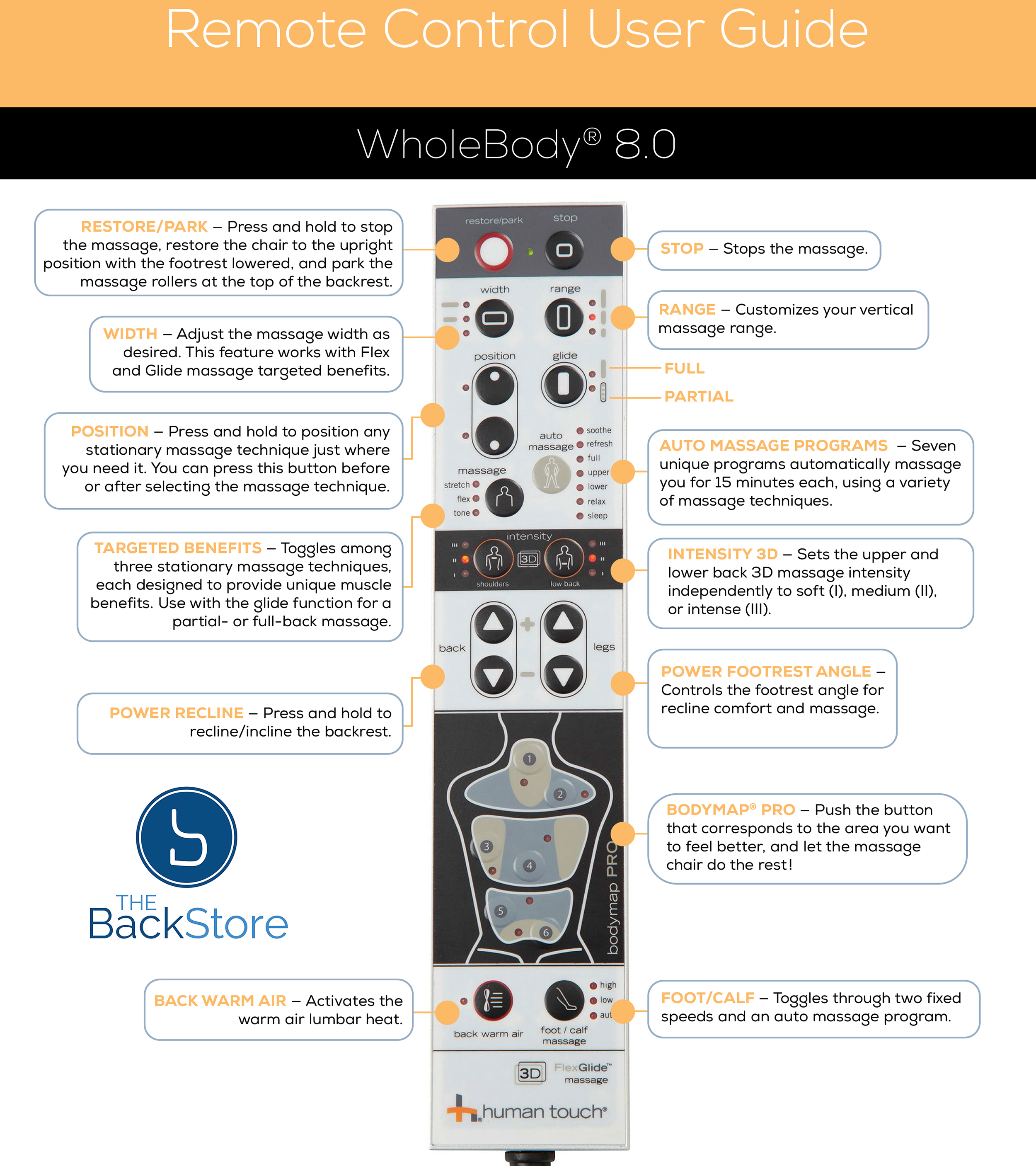 of the WholeBody 8.0 Massage Chair include: